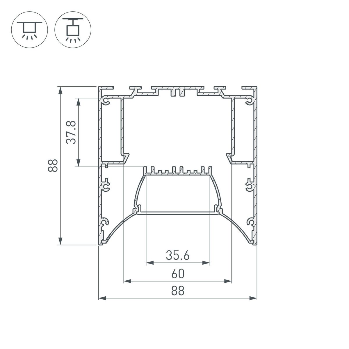 Алюминиевый профиль Arlight ARH-Power-W88-Comfort-2000 Anod 036363