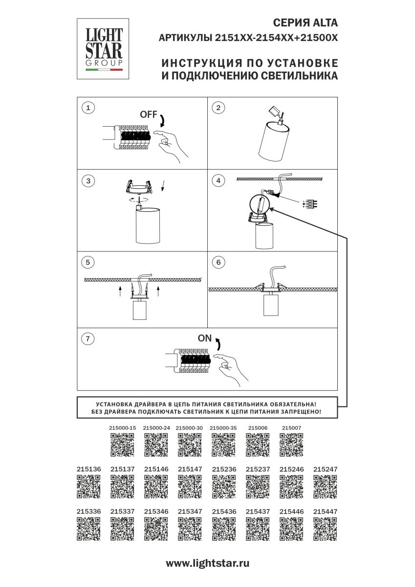 Блок питания 30W для серии ALTA 2153XX, 2156XX Lightstar 215000-30 999,00 ₽