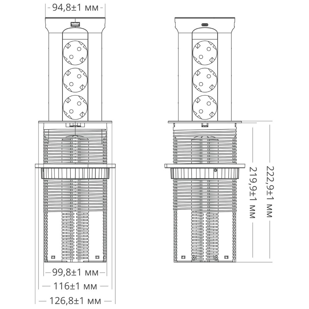 Блок розеток 17 (12 секций и USB type A+C) беспроводная зарядка Mebax 00-00002599