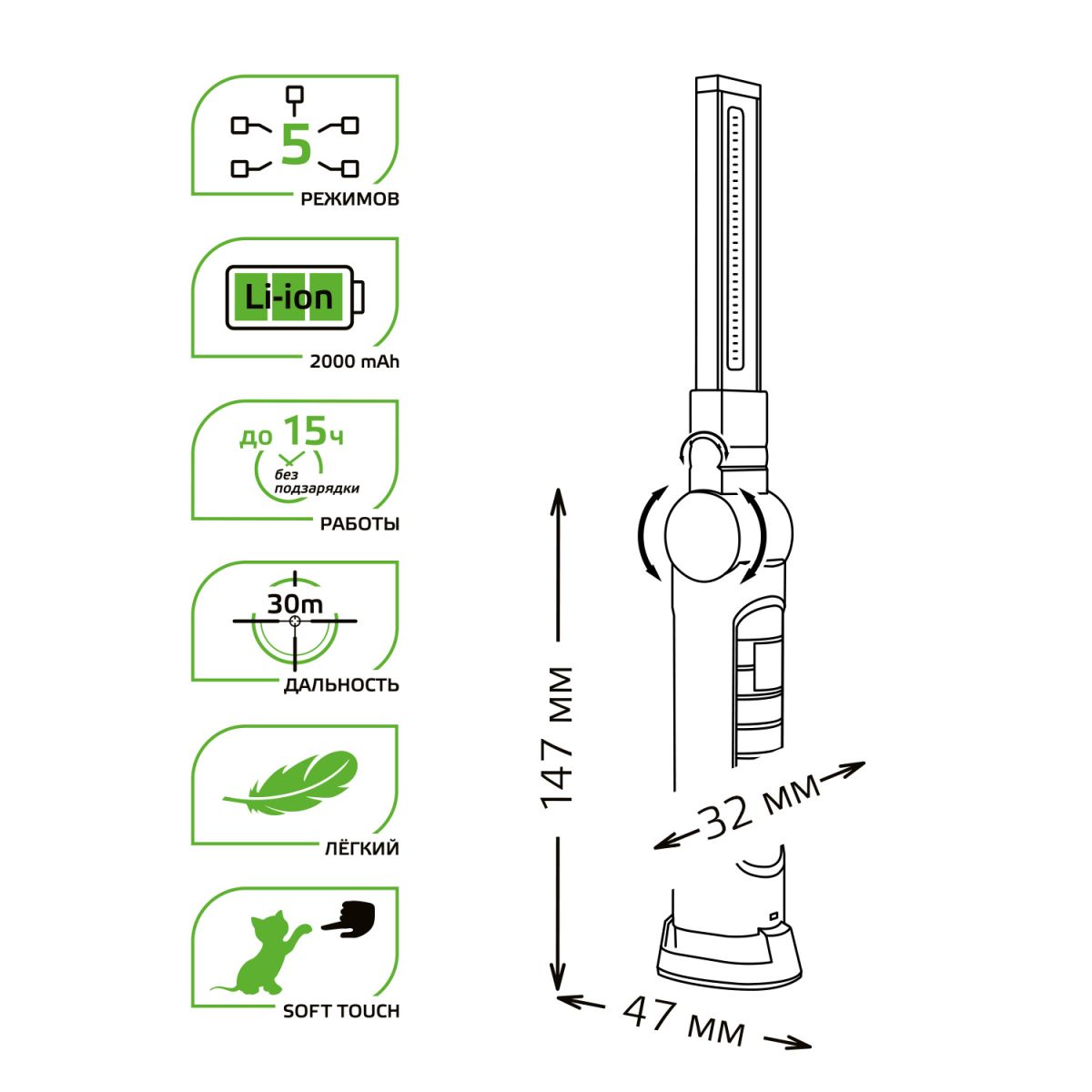 Автомобильный светодиодный фонарь Gauss аккумуляторный 375х37 500 лм GF801