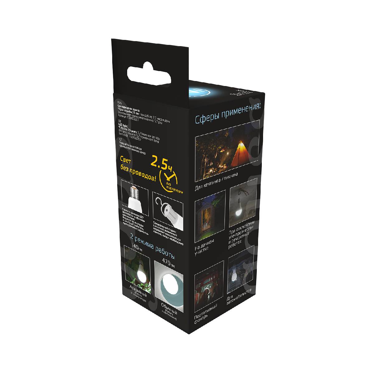 Лампа светодиодная аккумуляторная Gauss E27 7W 4100K матовая 102402207
