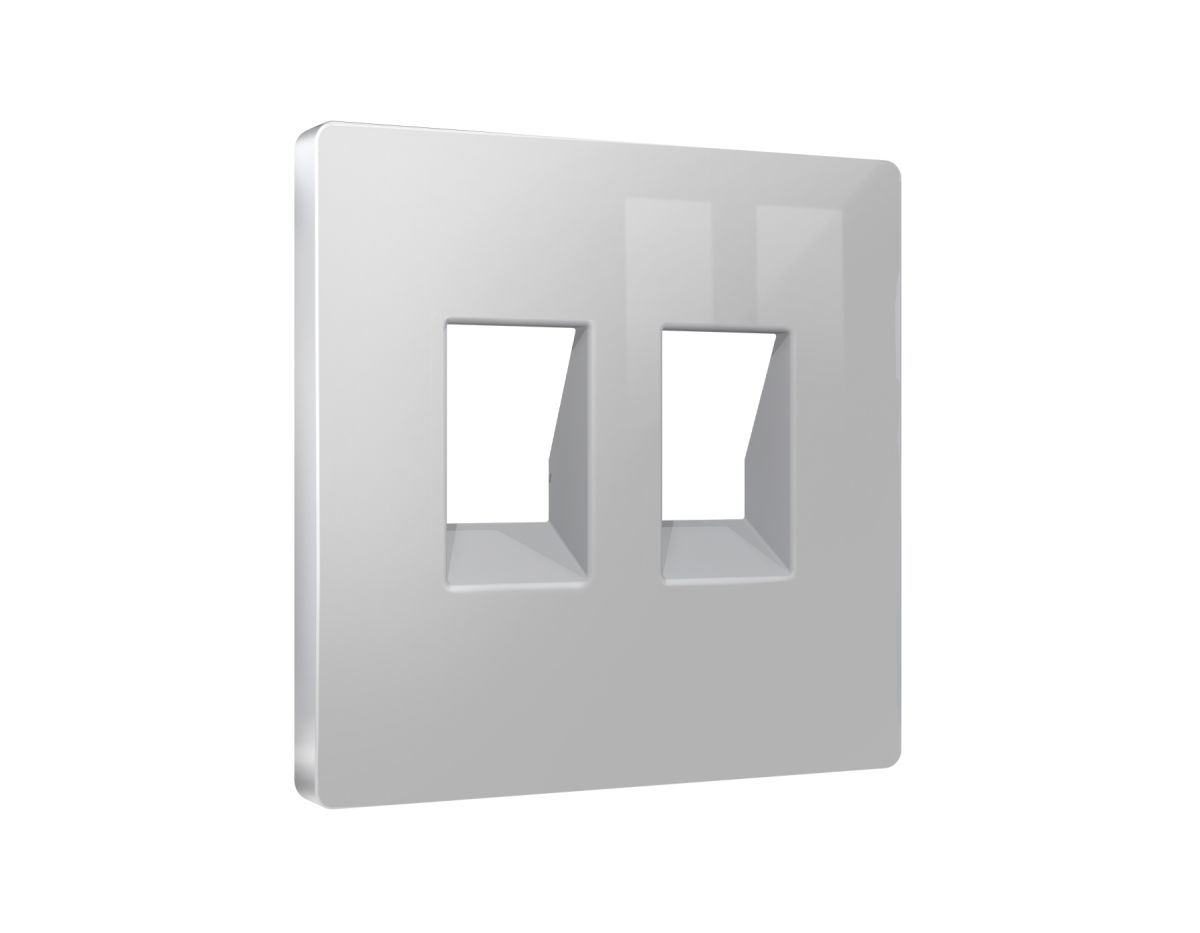 Лицевая панель Alfa (Серебро глянец) для компьютерной/телефонной двойной розетки RJ-45/RJ-11 Quant Ambrella Volt AP4121