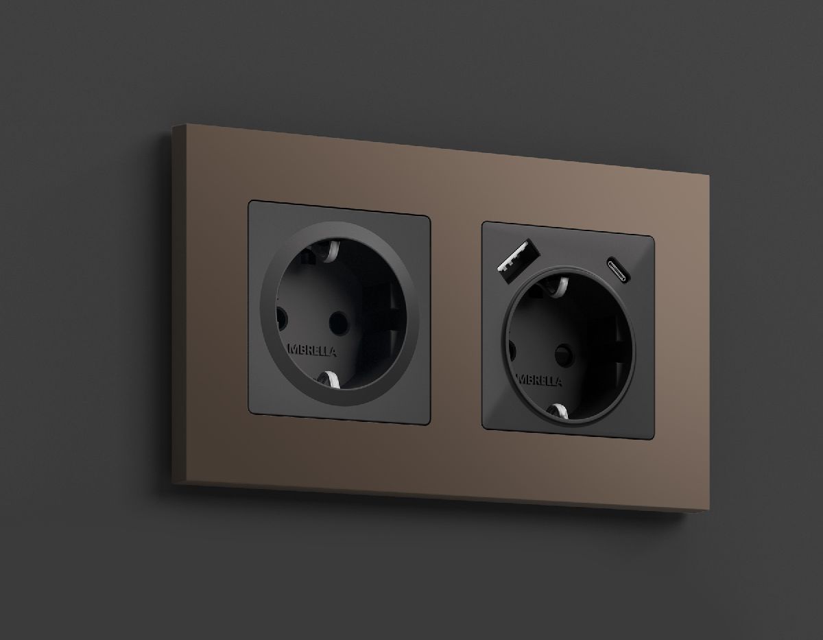 Лицевая панель для розетки с/з со шторками 2USB A+C Ambrella Volt Omega OP6400