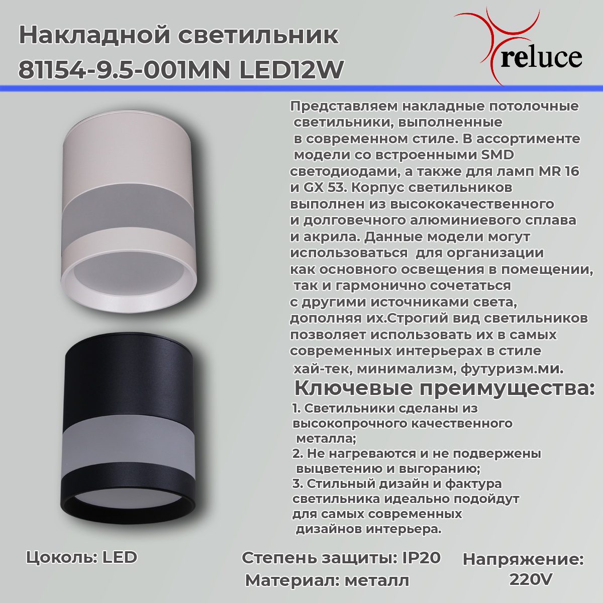 Накладной светильник Reluce 53001-9.5-001IL GX53+LED3W WT