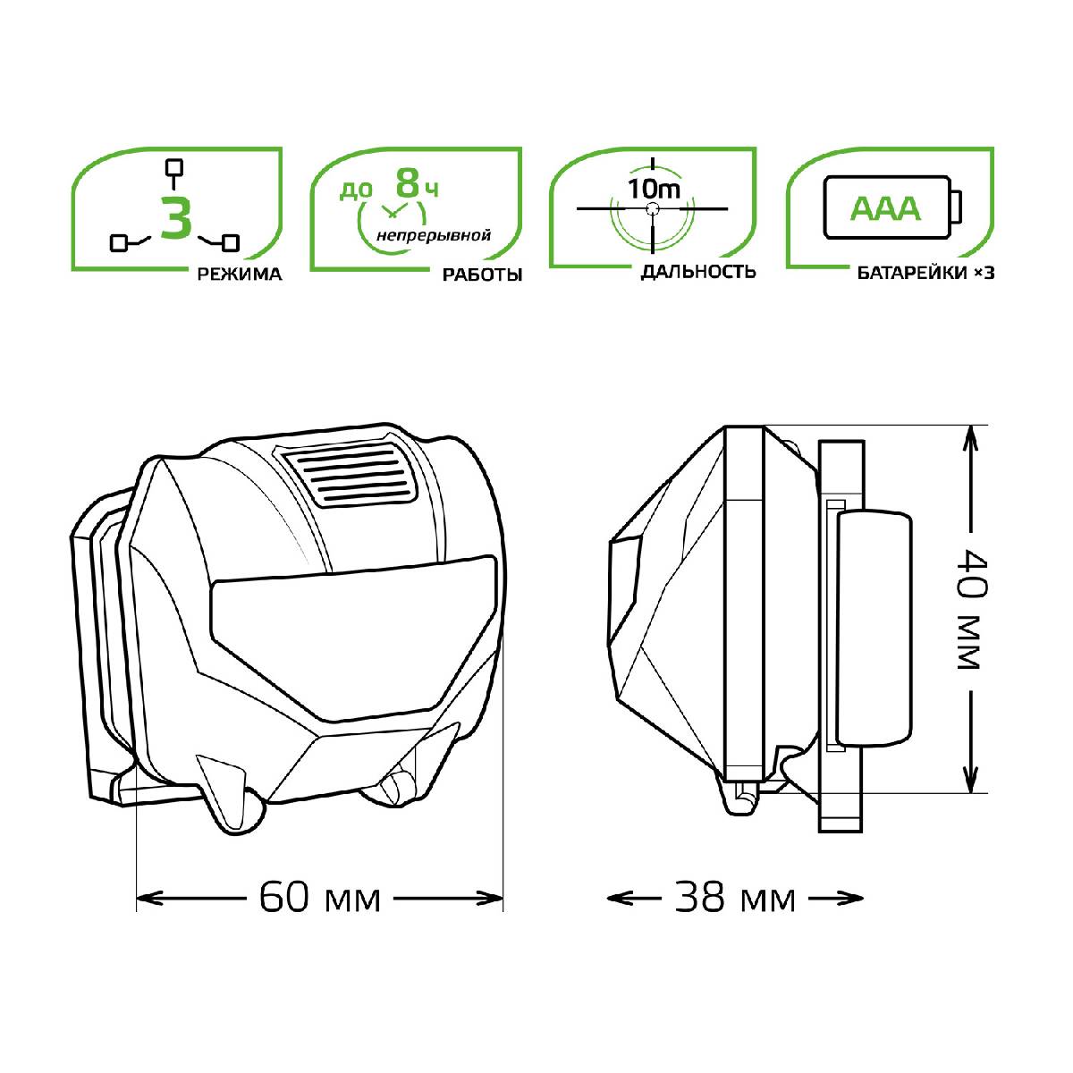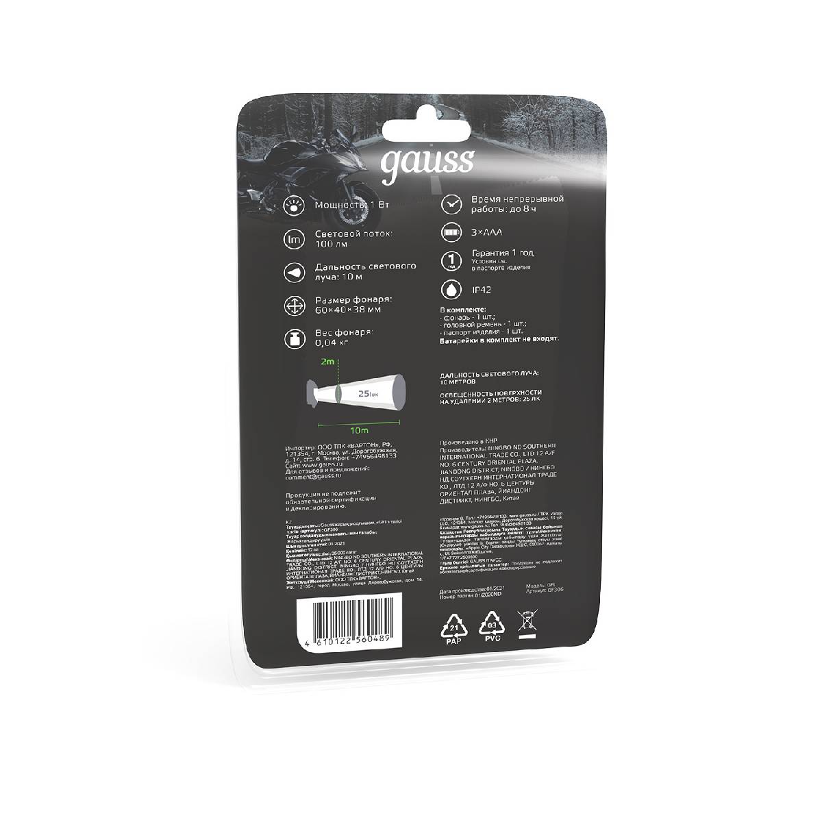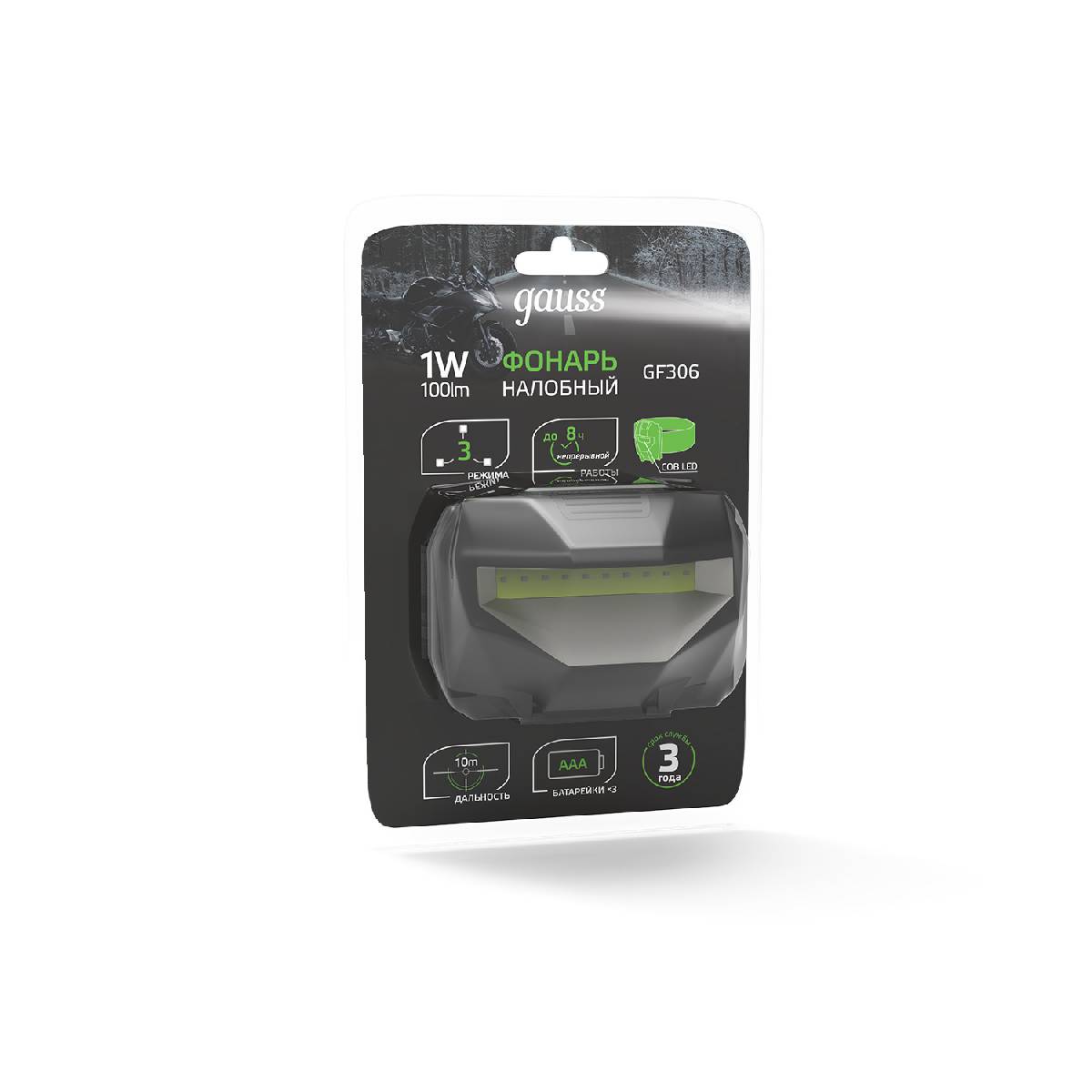 Налобный светодиодный фонарь Gauss аккумуляторный 60х70 100 лм GF401