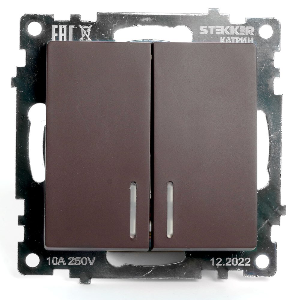 Выключатель 2-клавишный (механизм) Stekker Эмили 250В 10А RSW10-5104-08 кашемир soft touch 49892