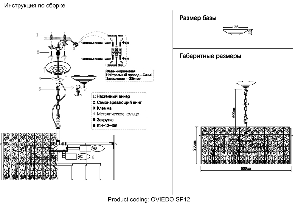 Длина подвеса в мм 635
