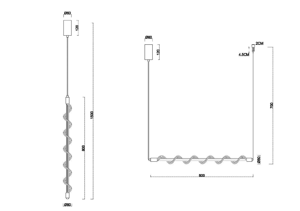 Длина подвеса в мм 700
