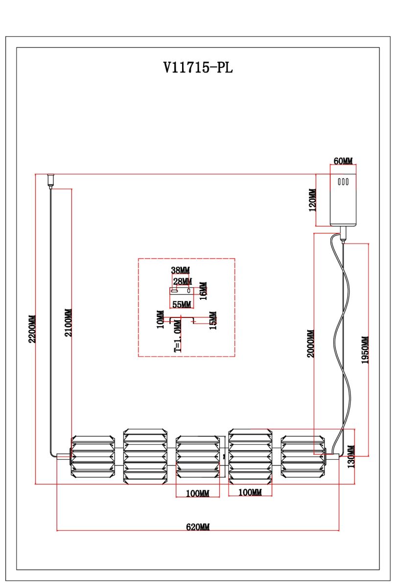 Длина подвеса в мм 1800