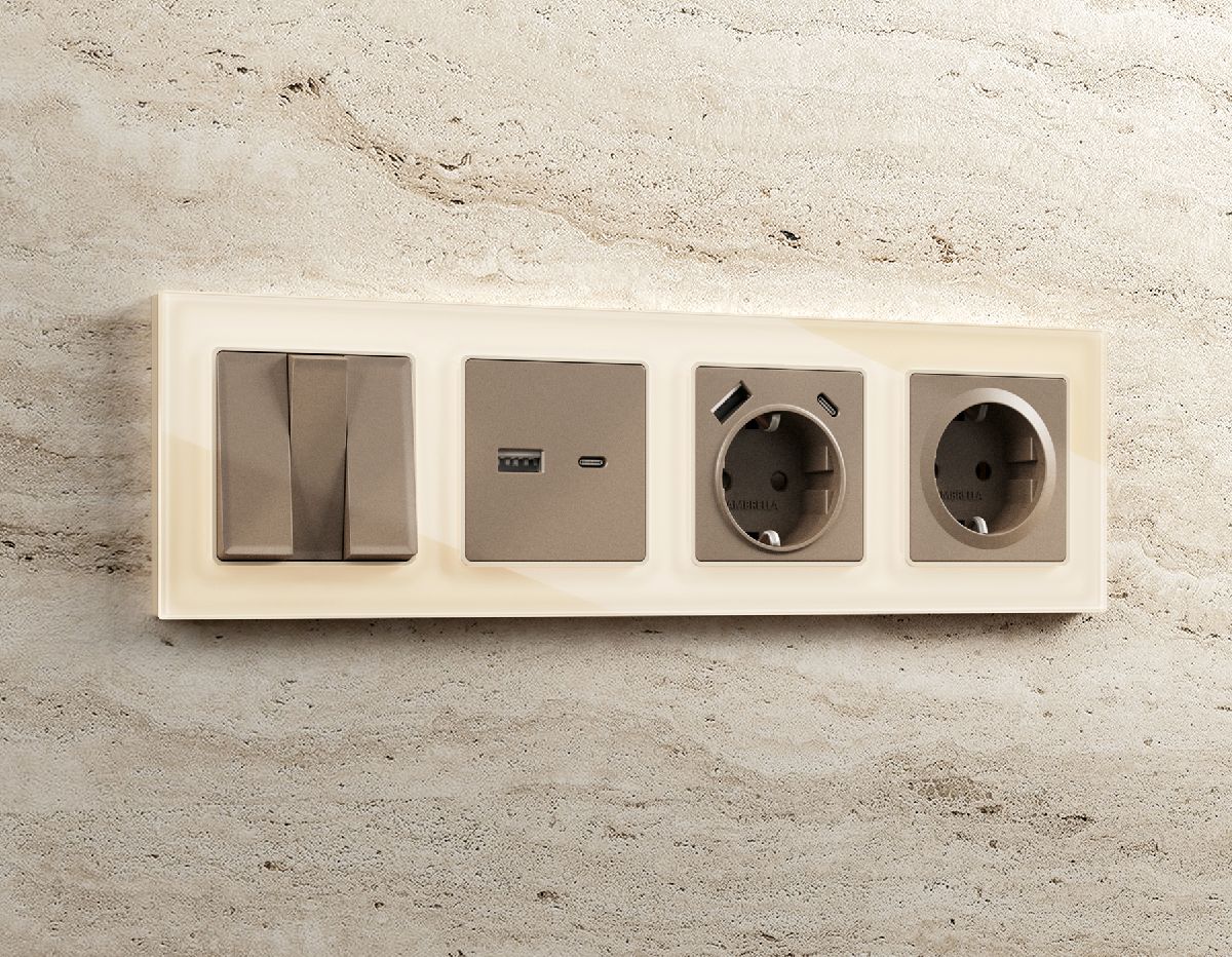 Лицевая панель для розетки с/з со шторками 2USB A+C Ambrella Volt Omega OP6400
