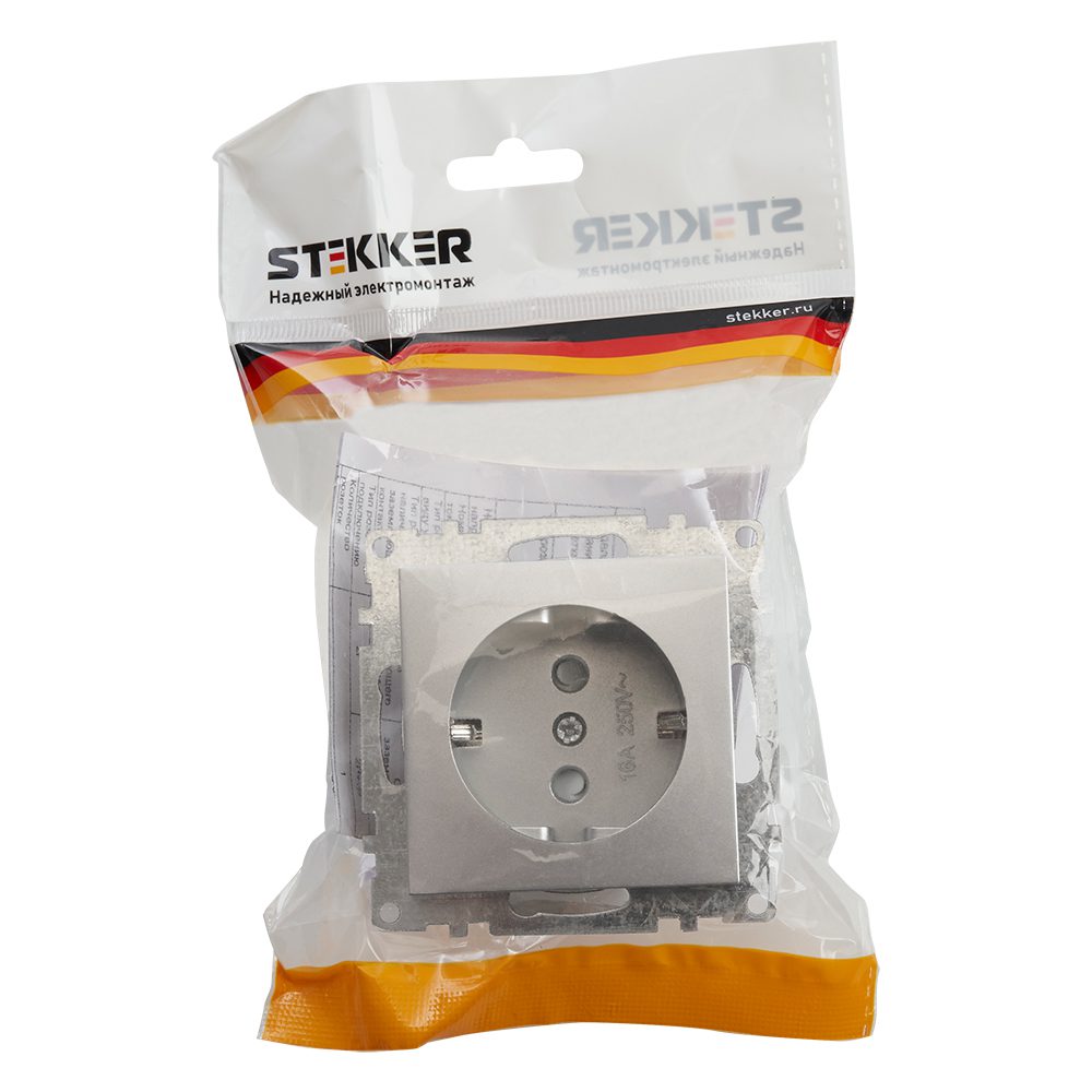 Розетка 1-местная с/з с защитной шторкой Stekker Катрин 39582