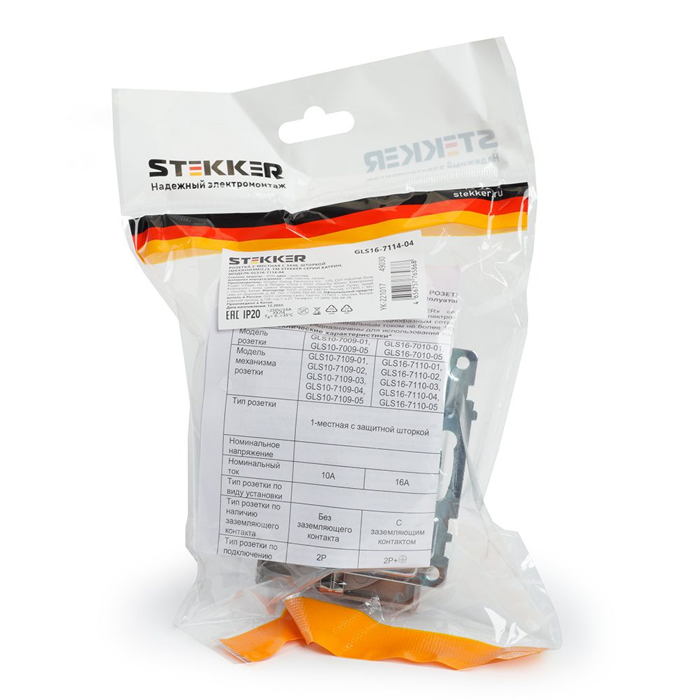 Розетка 1-местная с защитной шторкой Stekker Катрин GLS16-7112-04 49029