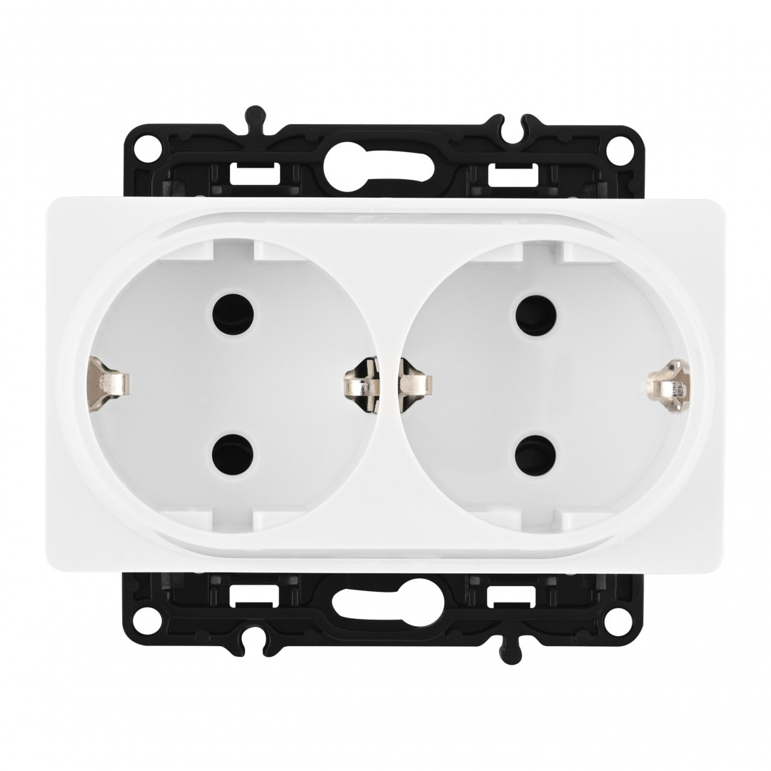 Розетка двойная (двухпостовая) с/з и шторками Arte Milano SET16-2-41-1x2 white