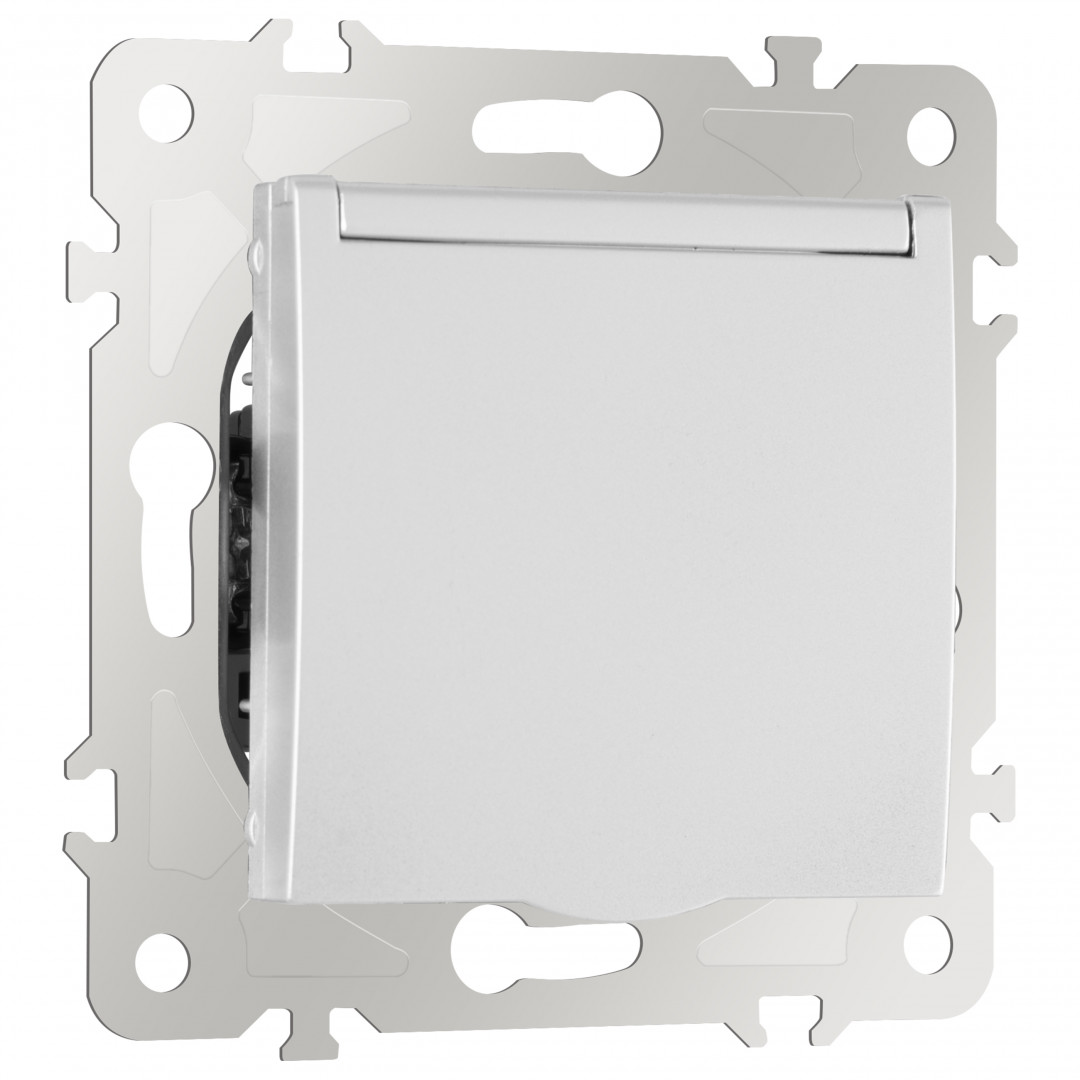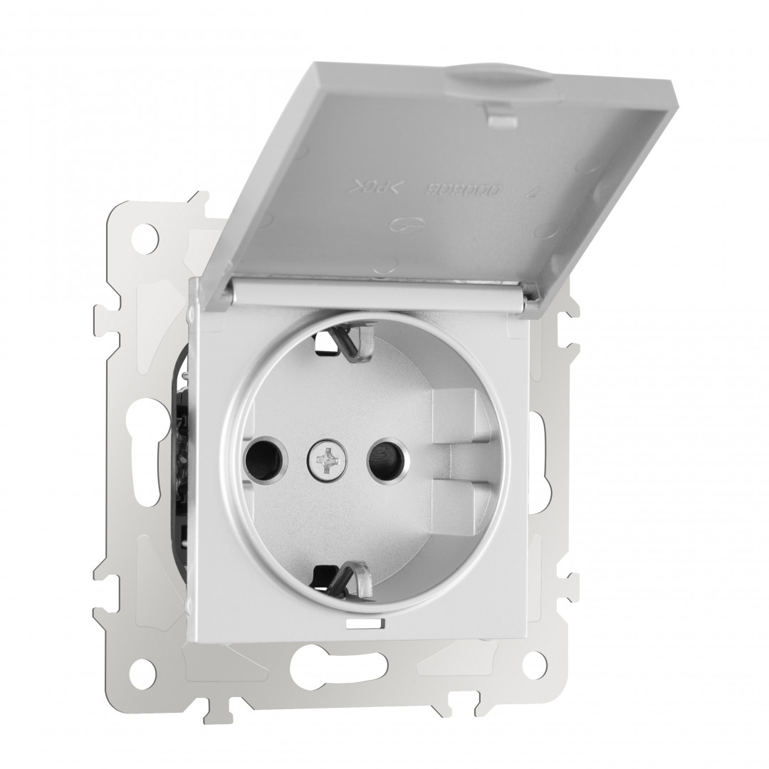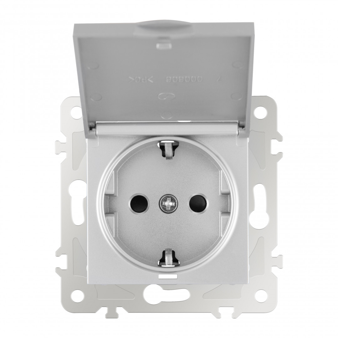 Комплект розетки с/з и шторками, защитной крышкой и рамкой Arte Milano SET16-1-41-1 silver