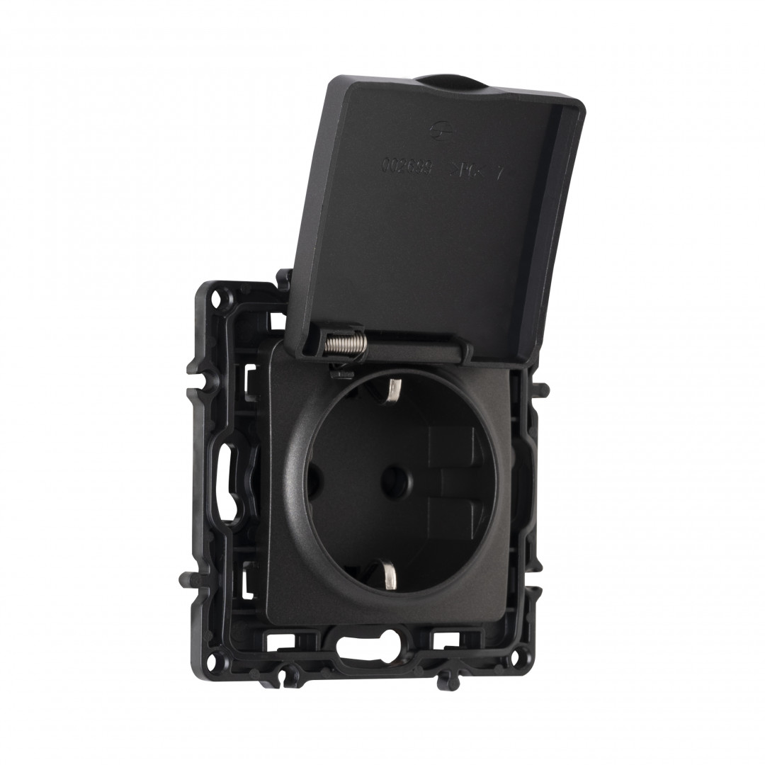 Комплект розетки с/з и шторками, защитной крышкой и рамкой Arte Milano SET16-1-41-1 black