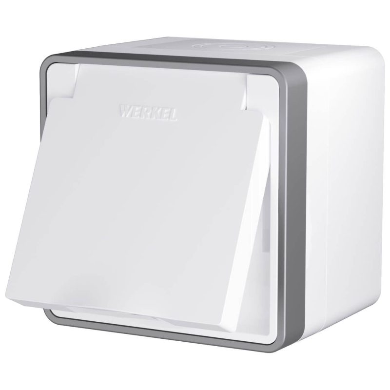Розетка влагозащищенная с заземлением, с защитной крышкой и шторками Werkel белый W1171201 4690389213144 a069588