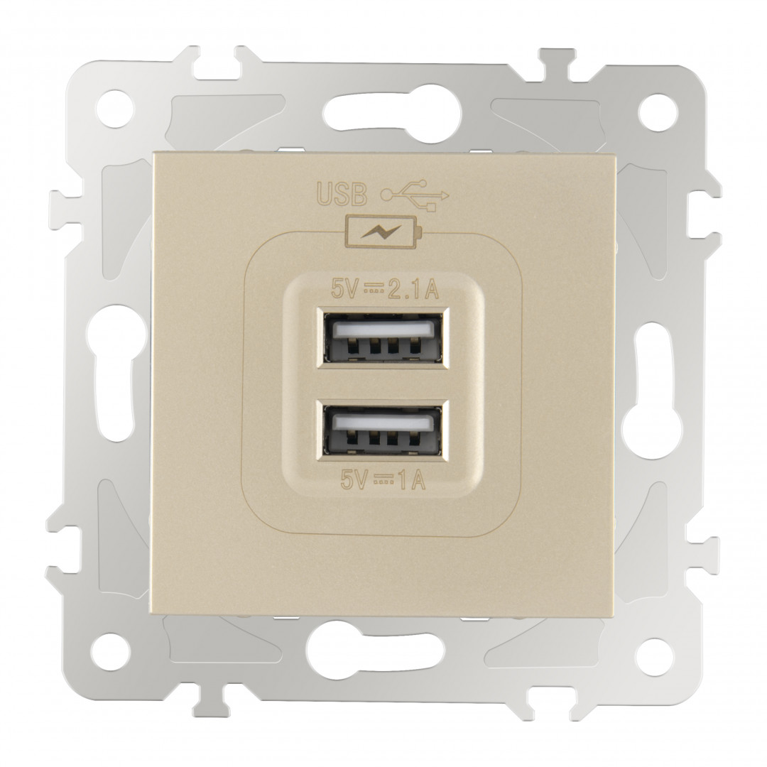 Розетка двойная (двухпостовая) с/з и шторками + USB Arte Milano SET16-2-47-1-40-1 shampan