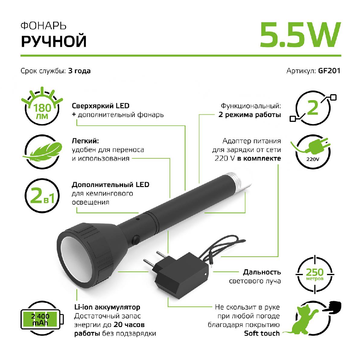 Фонарь ручной Gauss GF207