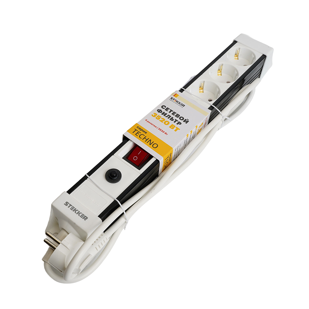 Сетевой фильтр 4-местный с/з Stekker Techno HM22-41-05 50149