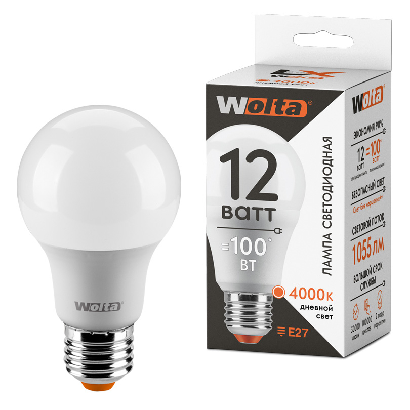 Светодиодная лампа WOLTA LX 12Вт 4000К Е27 груша матовая 30S60BL12E27