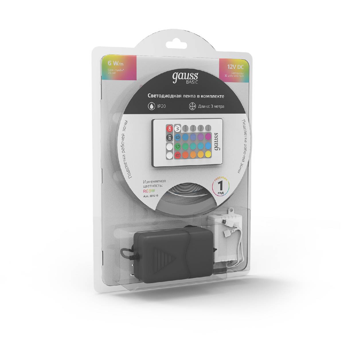 Светодиодная лента Gauss Basic 12В 5050 6Вт/м RGBW 3м IP20 BT010