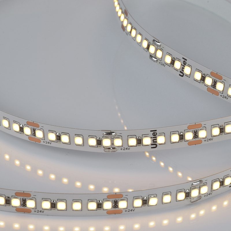 Светодиодная лента Uniel ULS-2835-180LED/m-10mm-IP20-DC24V-17W/m-5M-3000K катушка в герметичной упаковке