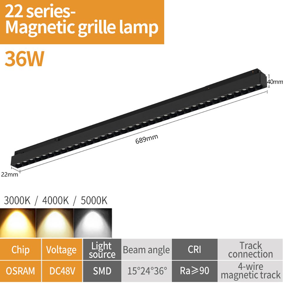 Трековый магнитный светильник iLedex Vision48-25 4825-039-L197-12W-36DG-3000K-BK