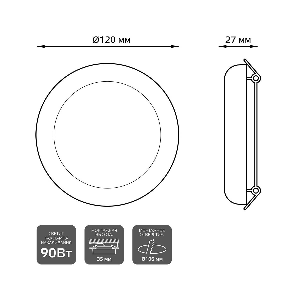 Врезное отверстие, мм